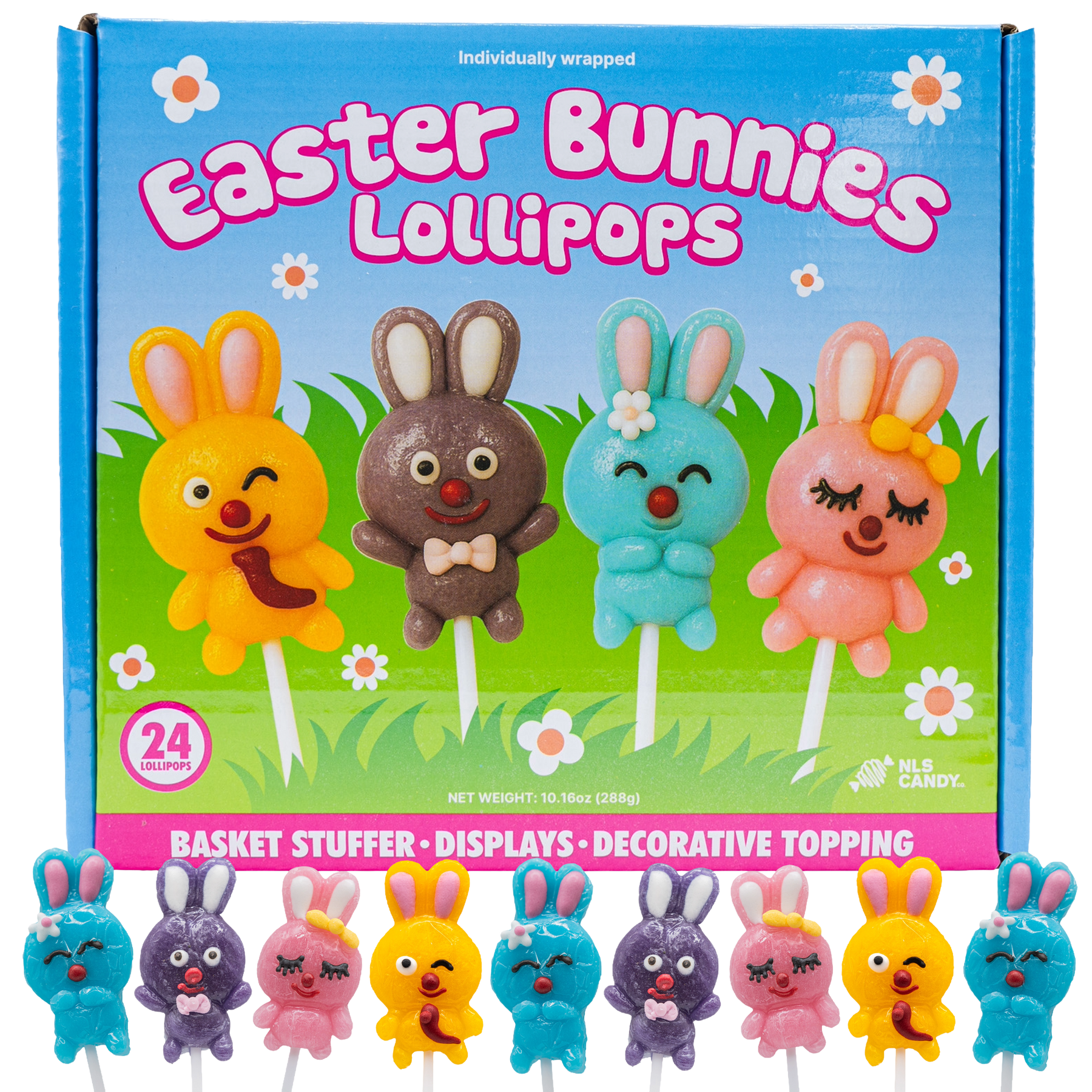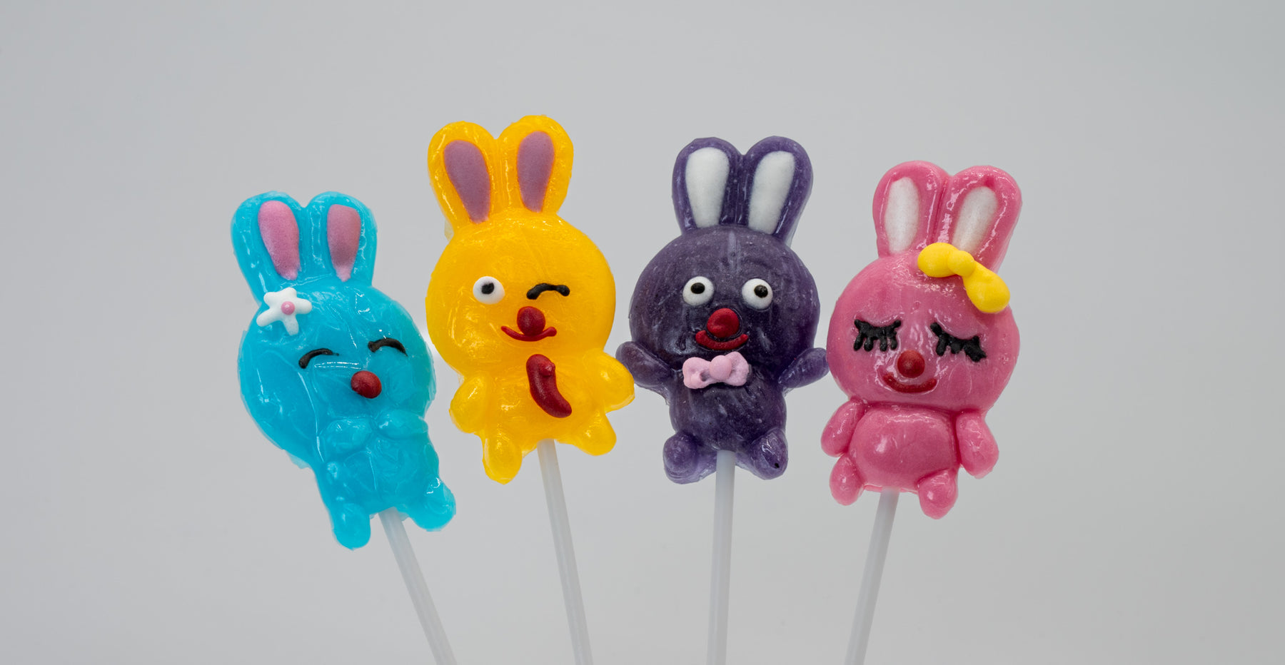 Festive bunny-shaped lollipops with classic candy flavors and bright spring colors. The design is instantly recognizable, making them easy to spot and easy to place in Easter settings.